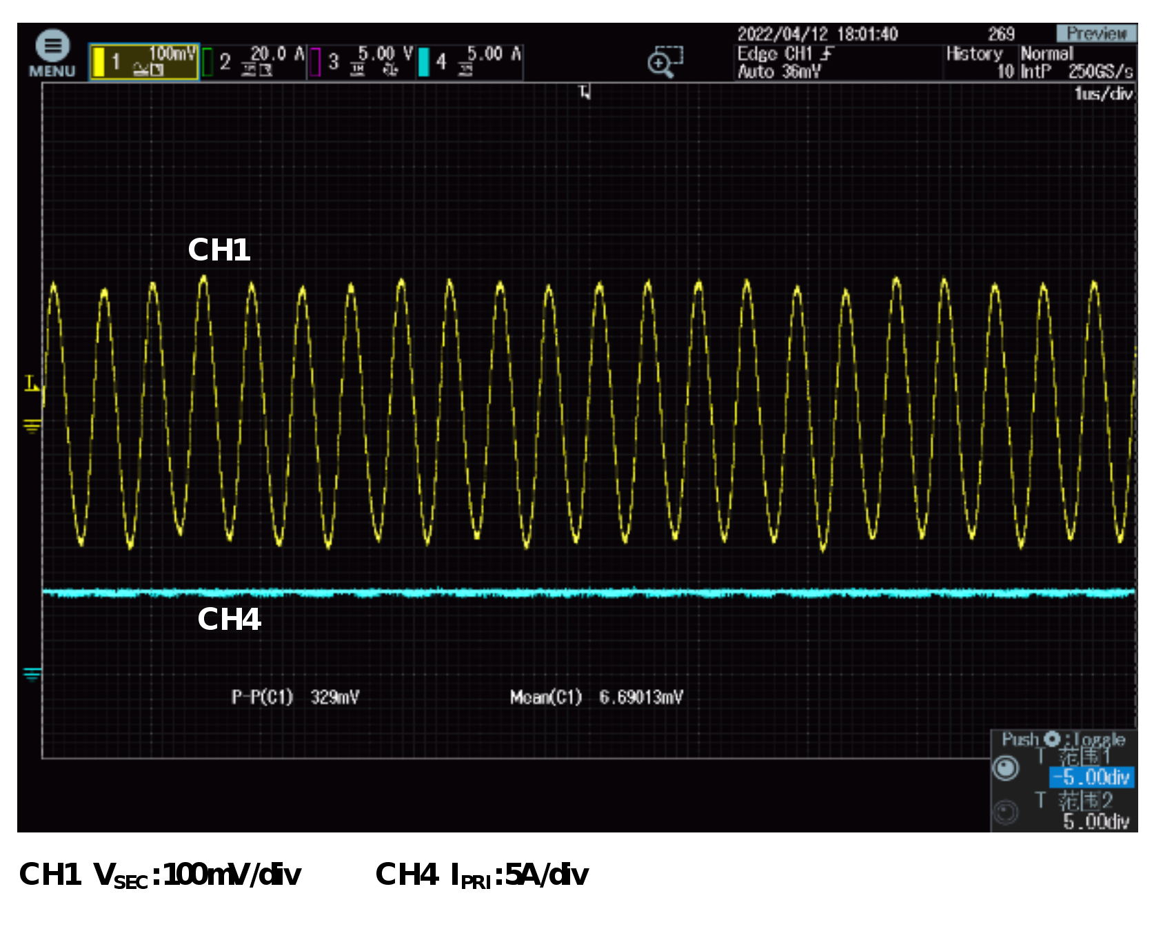 滿載輸出電壓紋波實測圖(無外部CSEC_OUT_EXT ,帶寬20MHz)